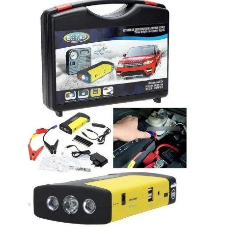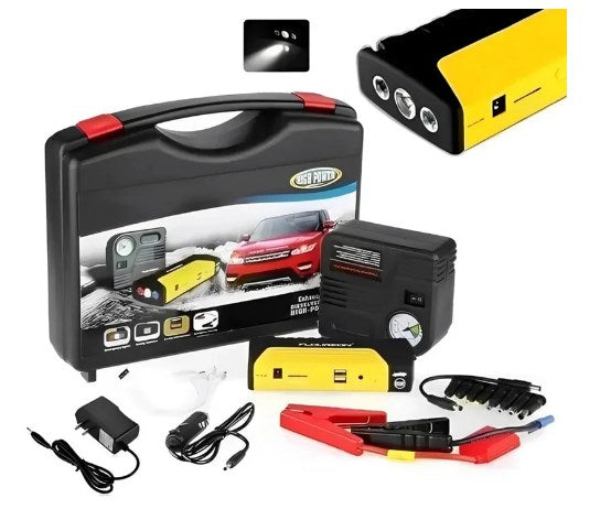 Este arrancador portátil multifuncional es tu compañero perfecto para emergencias en carretera y viajes, por ejemplo si te quedas sin bateria y tu auto no enciende, o si te quedas sin aire en tus llantas, tendrás la forma de solucionarlo.